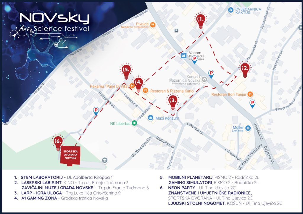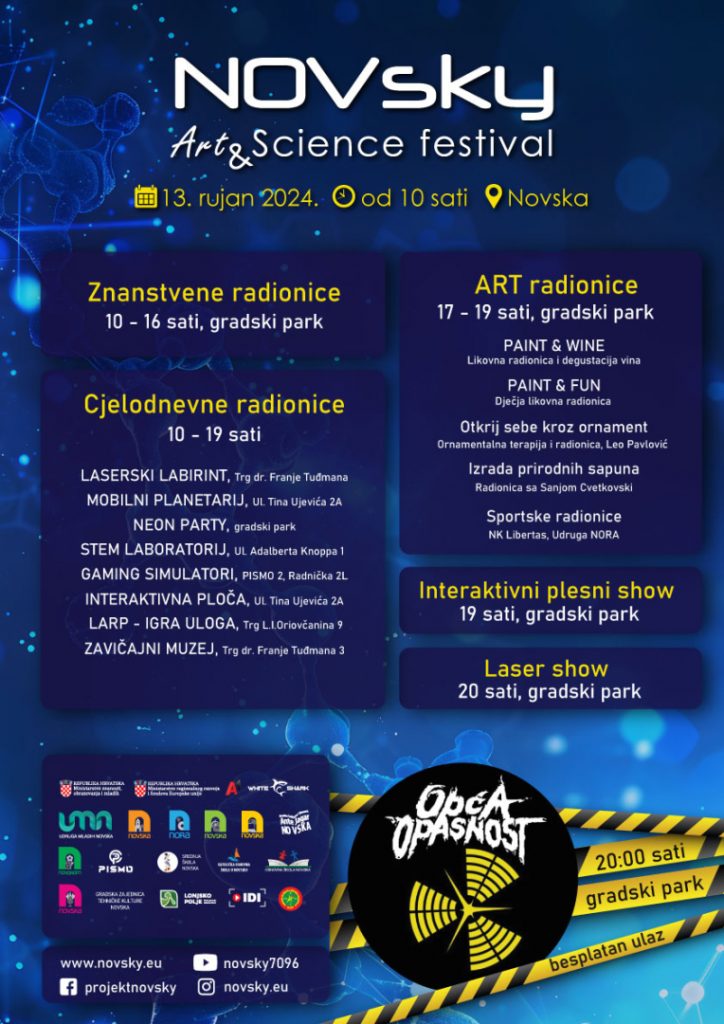 Za samo tri dana, u petak, 13. rujna 2024., Novska će postati središte umjetnosti i znanosti s petim izdanjem NOVsky Art & Science festivala. Iako vremenska prognoza predviđa kišu, organizatori su osigurali da festival teče besprijekorno. Glavna lokacija bit će dvorana Srednje škole Novska, dok će se dodatne aktivnosti odvijati u raznim drugim zatvorenim prostorima.